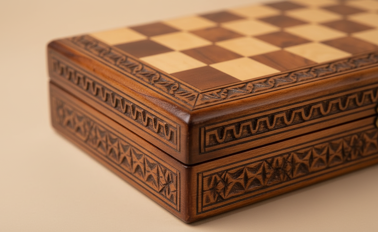 Bring tradition and craftsmanship to your game nights with this beautifully handcrafted Moroccan wooden chess box. Designed by skilled artisans, this piece combines elegance and functionality, featuring intricate hand-carved patterns inspired by Moroccan geometry.
