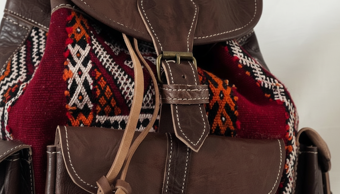 Each backpack is carefully handcrafted by Moroccan artisans, using traditional leatherworking techniques that highlight the natural texture and durability of genuine leather. The detailed stitching and classic buckle closures add an authentic artisanal touch.